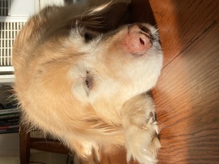 Initially she was traumatized leaving Bob and the only family she knew – but it took her just a short time to adjust and realize that Jeff and I were her new humans. Having lived with men for 9 years she immediately gravitated to Jeff and attached herself like Velcro to him. I was no doubt a valuable resource – but it was JEFF who was her idol. JEFF who she followed. JEFF, JEFF, JEFF. I was there for an occasional respite, petting and treats. Lots of treats and lots of loving. But her devotion was to the male species. Could you blame her?